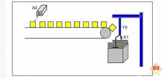 X0–用于计数产品的光电传感器。在检测产品时,X0=ON。