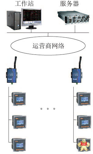 安全用电管理平台采用分层分布式结构进行设计,即现场设备层、网络通讯层和站控管理层,详细拓扑结构如下: