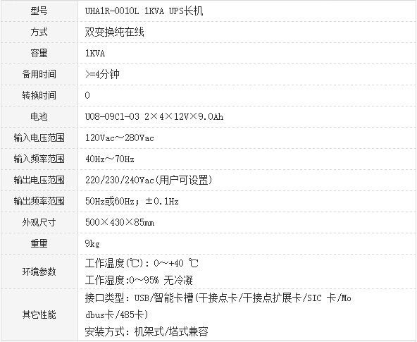 易卖工控网(www.ymgk.com)提供”UPS不间断电源 UHA1R-0010L 1KVA/900W”,产品详情:品牌/厂家:其他品牌、型号:UHA1R-0010L 1KVA/900W、成色:全新、货期:期货 7天内发货、保修:1095天,更多产品详情就上易卖工控网。