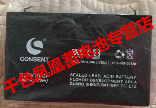 CONSENT电池 GS6V12AH 电动玩具车蓄电池 电子称通信仪表铅酸电瓶