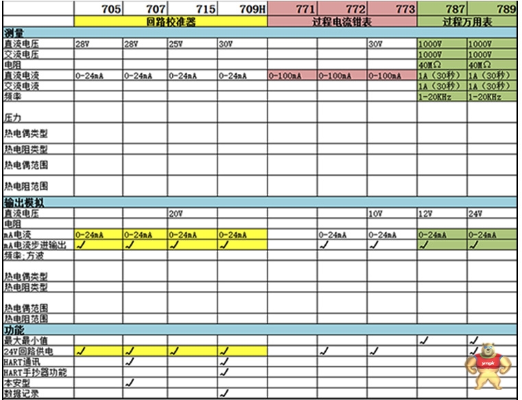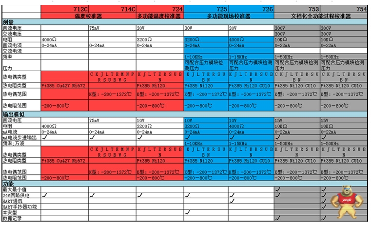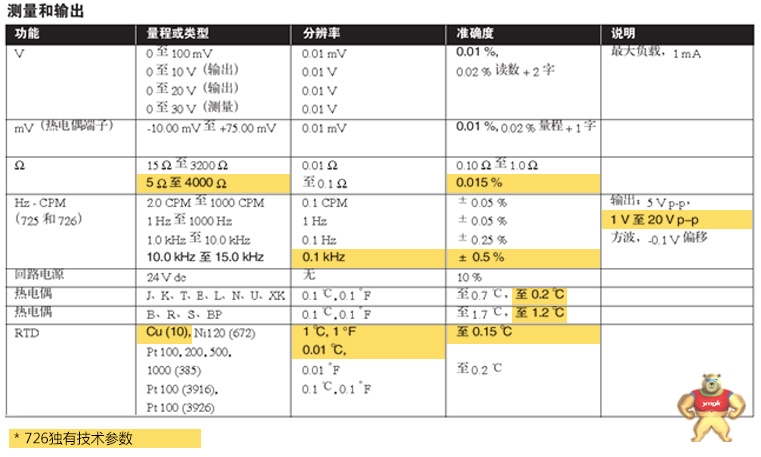 | 功能特点 | | • 小巧,流线型设计,容易携带和手持 • 坚固、可靠,适合现场使用 • 测量和输出同时显示,您可以同时读出仪表的输入和输出值 • 测量伏特、毫安、铂电阻(RTD)、热电偶、频率和欧姆的功能,可测试传感器/变送器 • 输出/模拟电压、电流、热电偶、铂电阻(RTD)、频率、电阻和压力,以校准变送器 • 输出mA的同时测量压力以进行I/P测试和阀门测试 • 使用 48 个 Fluke 750Pxx 压力模块中的任何一个测量或输出压力 • 频率和每分钟计数功能(CPM)可支持流量仪表测试 • 自动步进和斜坡输出可进行快速线性检测 • 给变送器提供回路电源的同时进行mA测量 • 利用快达10 ms的脉冲可测试快速脉冲RTD变送器和PLC • 保存频繁使用的设置状态,方便以后使用 • 背光显示屏,适合任何照明条件下使用 • 更加精确地测量和校准输出性能,准确度高达 0.01%(726) • 更加宽泛的量程及输出能力(726) • 集成式压力关开测试允许您捕获开关的设置、重新设置和盲区(726) • 存储器可以存储多达 8 个校准结果,并从现场返回存储的校准数据以供将来分析(726) • HART 模式在毫安测量和输出中插入 250 欧姆电阻器来与 HART 仪器兼容(726) • 频率累加器和频率脉冲序列输出模式实现增强的流量计测试 • 定制 RTD 曲线、为认证的 RTD 探针添加校准常数以实现增加的温度测量。(726) • 三年保修 | | |
