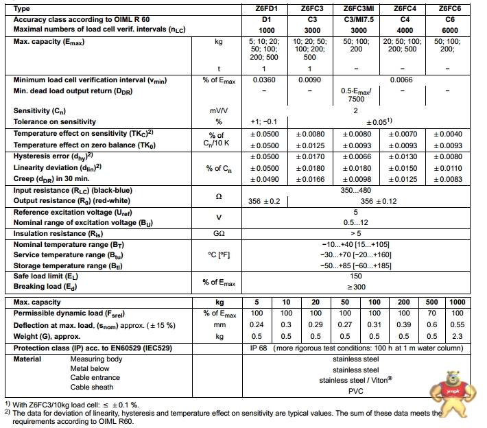 是平台秤,料斗秤的传感器理想选择。HBM Z6FD1系列称重传感器可以达到C6精度