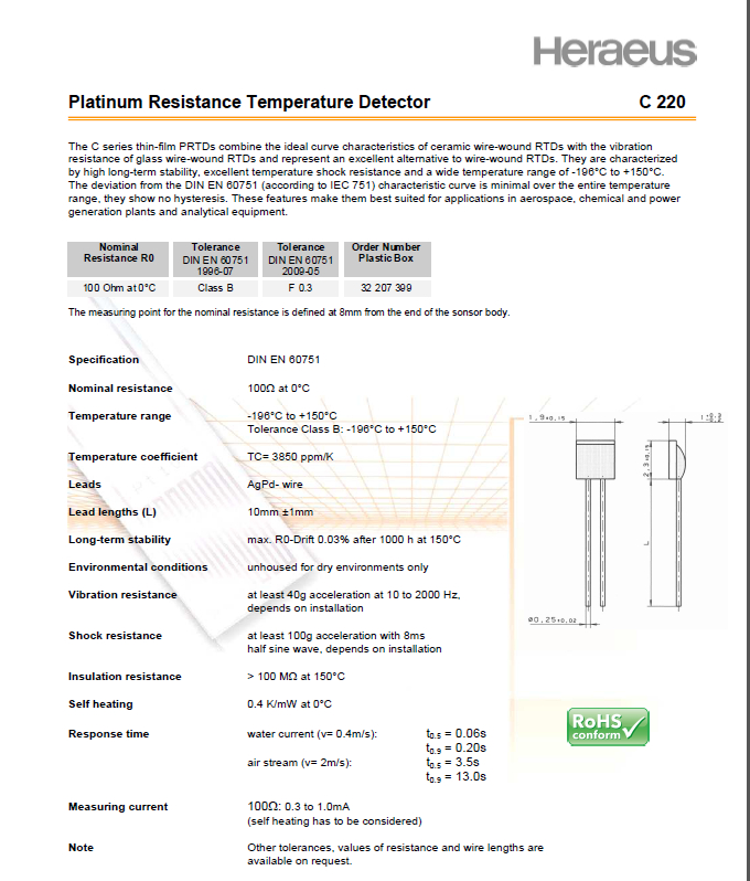 易卖工控网(www.ymgk.com)提供”德国Heraeus PT1000铂电阻PT100超低温度铂电阻C220”,产品详情:品牌/厂家:理士国际、型号:C220、成色:全新、货期:期货 7天内发货、保修:365天,更多产品详情就上易卖工控网。
