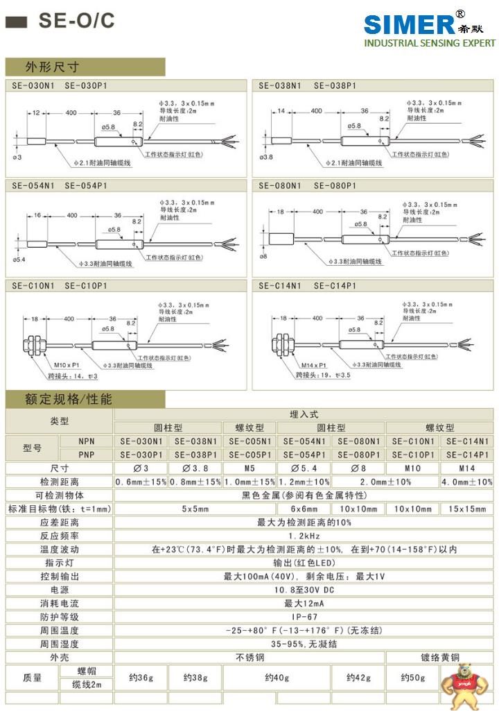 易卖工控网(www.ymgk.com)提供”希默SIMER接近传感器/接近开关SE-O/C 希默传感器”,产品详情:品牌/厂家:希默、型号:接近传感器/接近开关SE-O/C、成色:全新、货期:期货 3天内发货、保修:365天,更多产品详情就上易卖工控网。