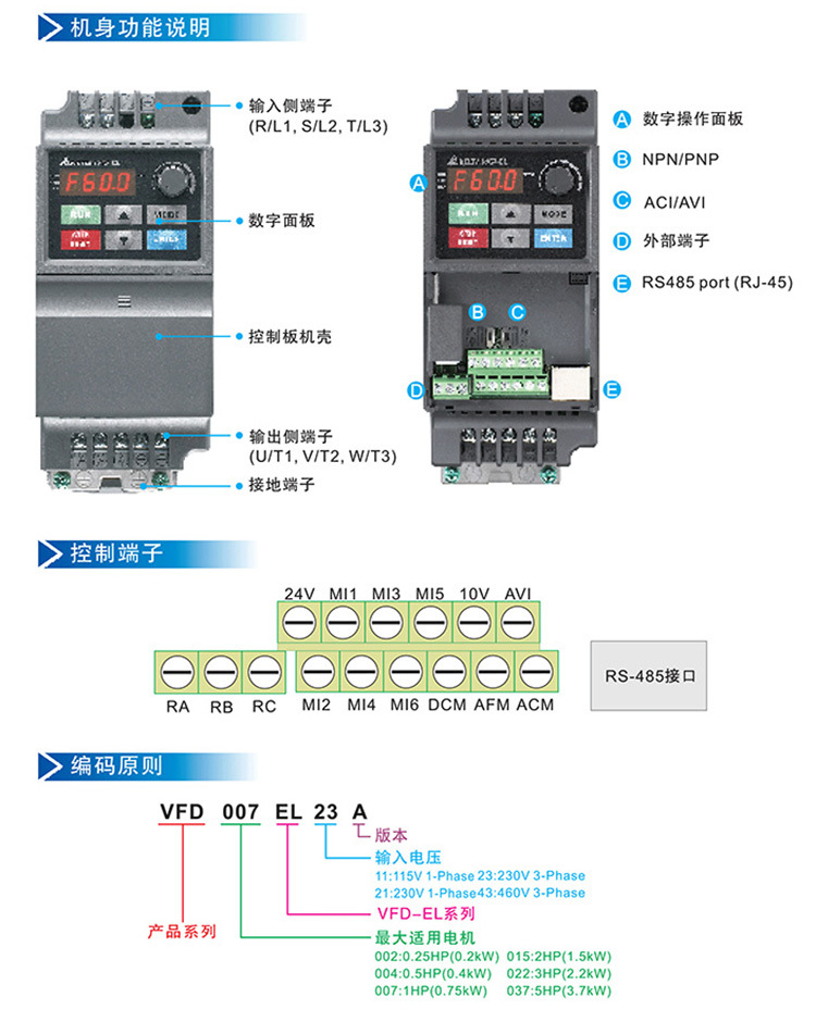 易卖工控网(www.ymgk.com)提供”台达变频器VFD007EL43A台达460V0.75KW变频器VFD-EL系列原装现货”,产品详情:品牌/厂家:台达、型号:VFD007EL43A、成色:全新、货期:现货 1天内发货、保修:365天,更多产品详情就上易卖工控网。