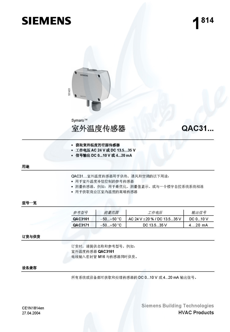 易卖工控网(www.ymgk.com)提供”现货 SIEMENS西门子 QAC3171 中央空调室外进口温度传感器4-20mA 楼宇自控汇总”,产品详情:品牌/厂家:西门子、型号:QAC3171、成色:全新、货期:期货 3天内发货、保修:365天,更多产品详情就上易卖工控网。