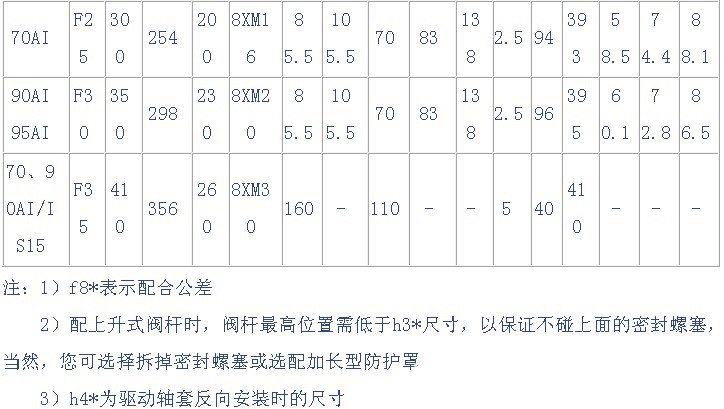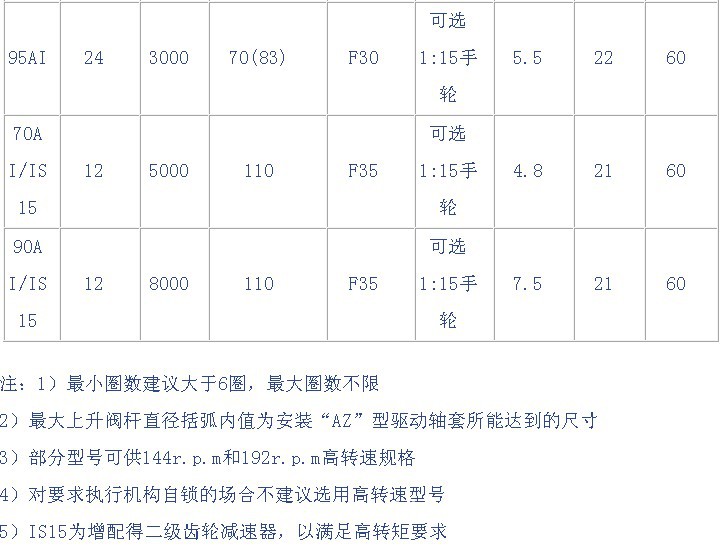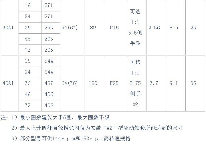 ●机械间隙:1)AI、MI多转式电动执行机构 ≤1°