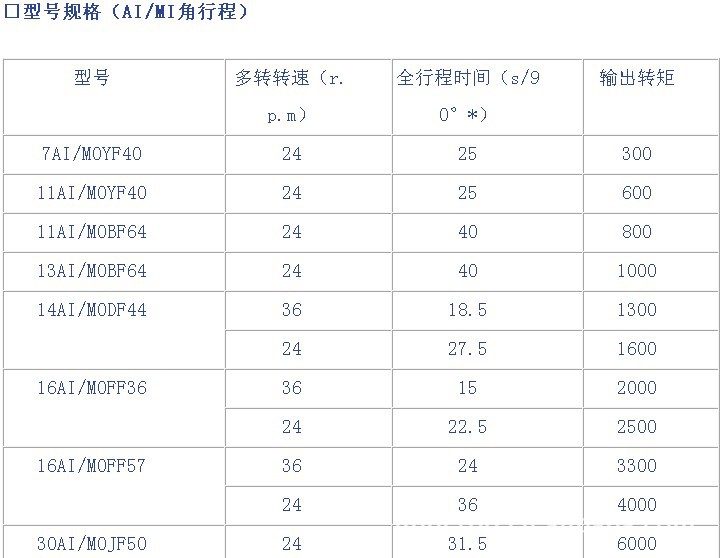 2)AI、MI角行程电动执行机构 ≤1°