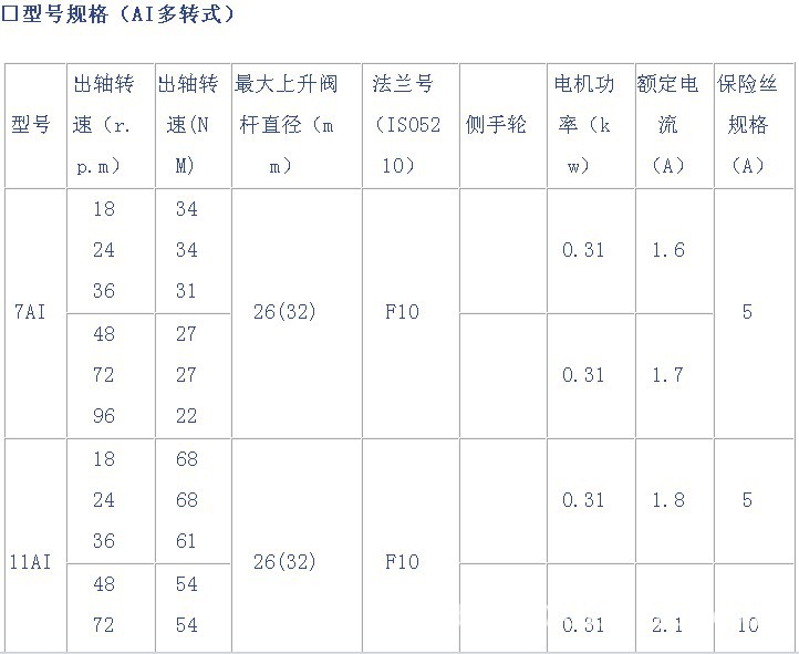●基本误差:1)AI、MI多转式电动执行机构 ≤±1%