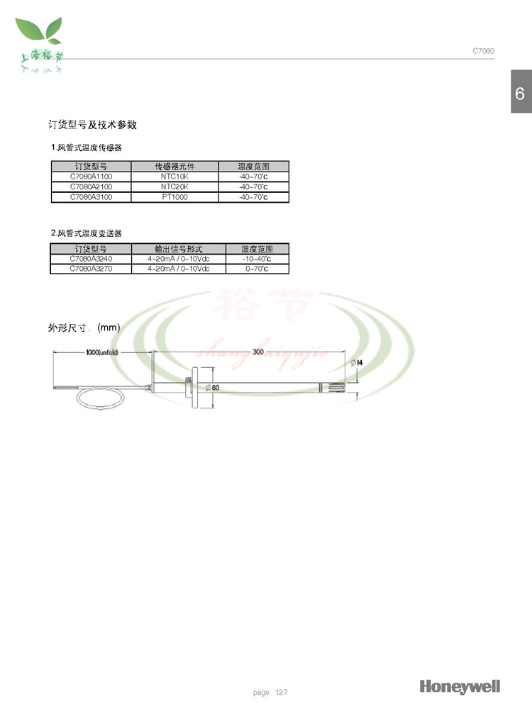 易卖工控网(www.ymgk.com)提供”现货 霍尼韦尔C7080A3270 风管/道温度传感器 变送器0-10V/4-20mA”,产品详情:品牌/厂家:霍尼韦尔、型号:C7080A3270、成色:全新、货期:期货 7天内发货、保修:365天,更多产品详情就上易卖工控网。