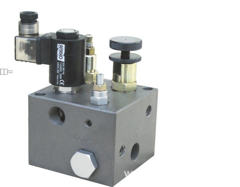 管式液压升降复合阀ET-02专用于液压升降平台,电磁阀电压AC220V、AC100V、DC24V带下降节流,可有效实现下降全过程平稳,下降速度不受负载大小影响。