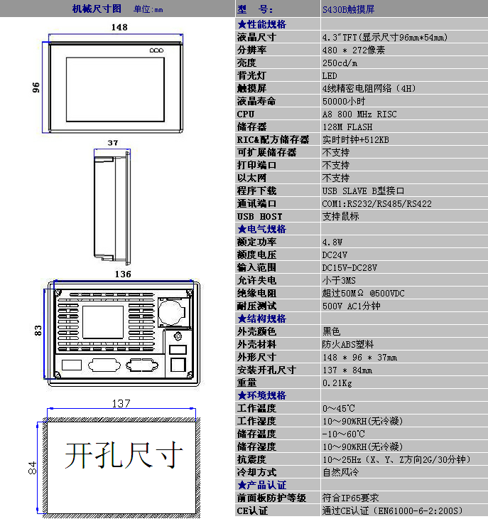 易卖工控网(www.ymgk.com)提供”YKHMI-S430B中达优控工业触摸屏显示器人机界面似威纶信捷”,产品详情:品牌/厂家:中达优控、型号:S430B、成色:全新、货期:期货 7天内发货、保修:365天,更多产品详情就上易卖工控网。